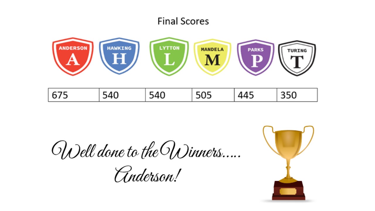 Anderson, Hawking, Lytton, Mandela, Parks, Turing.