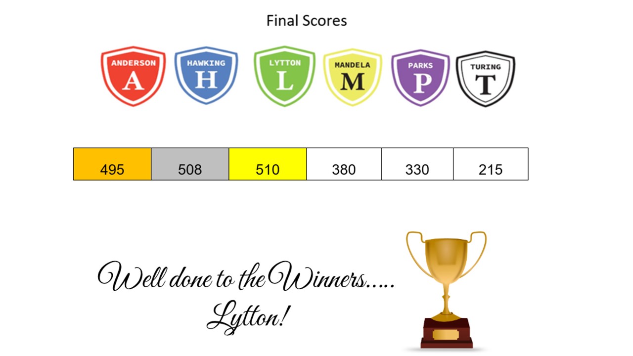 Anderson, Hawking, Lytton, Mandela, Parks, Turing.